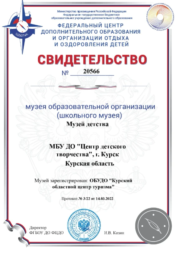 Деятельность членов совета музея детства под руководством директора МБУ ДО «ЦДТ»Е.А. Солодухиной
